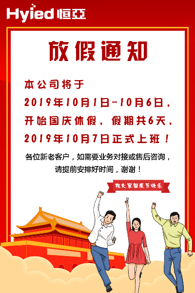 慶祝新中國成立70周年,恒亞放假通知: